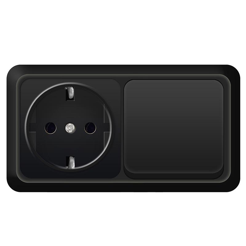 Блок ОП Олимп 1-кл. выкл.10А + роз. с заземл. 16А 220В горизонт. черн. Universal 7946806 - условия доставки