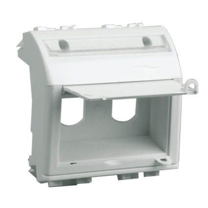 Адаптер для 2 оптоволоконных разъемов типа ST, 2 модуля. Назначение: установка оптоволоконных разъемов, быстро сочленяемое байонетное соединение. Характеристики: наклонная; с пылезащитной шторкой (крышкой); с окном (полем) для маркировки "рабочего места", размер окна - 6х37 мм. Кол-во модулей: 2. Цвет: белый. Совместим с адаптером ДКС ST/UPC-Simplex RNFAUSST