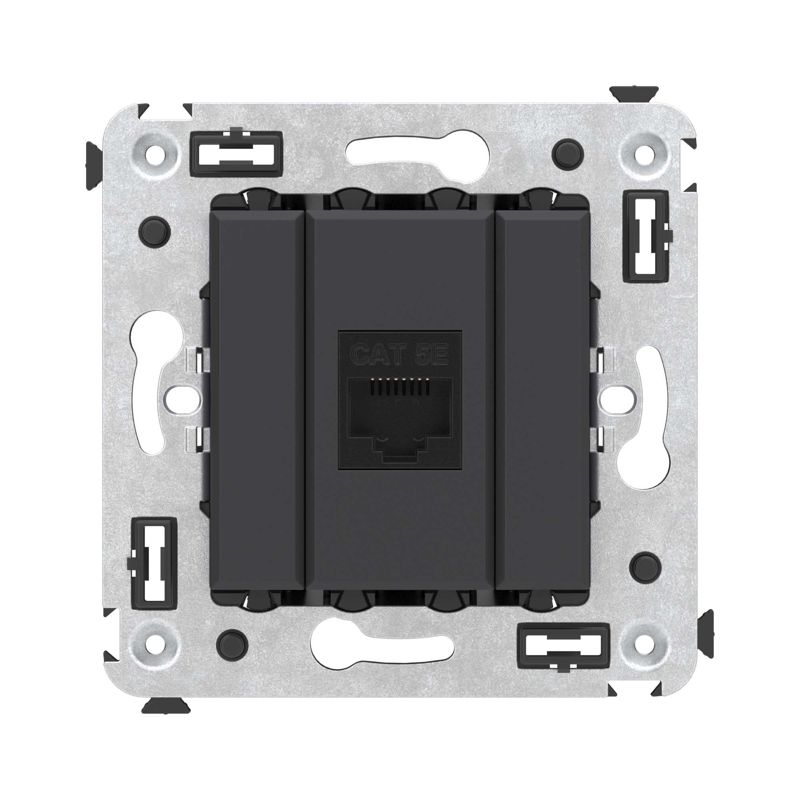 Описание: Розетка компьютерная 1-м СП Avanti "Черный матовый" RJ45 кат.5E без шторок механизм DKC 4412663
