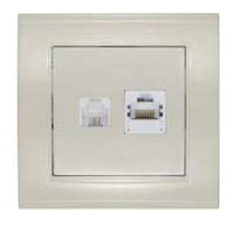 Розетка компьютерная + телефонная 2-м СП Бриллиант сл. кость UNIVersal 7948837 - условия доставки