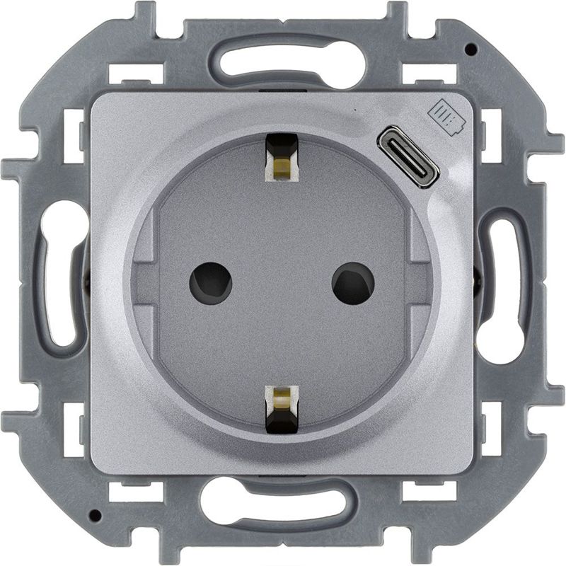 Розетка 1-м СП Inspiria 16А IP20 250В 2P+E немецк. стандарт с заряд. устройством USB тип C 1.5А 5В механизм алюм. IEK 673772 - условия доставки