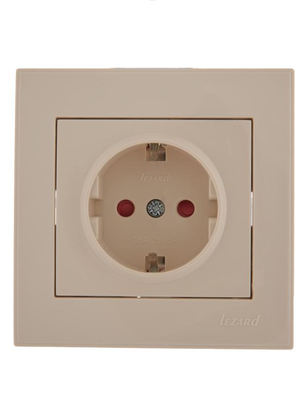 Розетка 1-м СП Rain с заземл. защ. шторки с заземл. керамика крем. LEZARD 703-0303-124 - условия доставки
