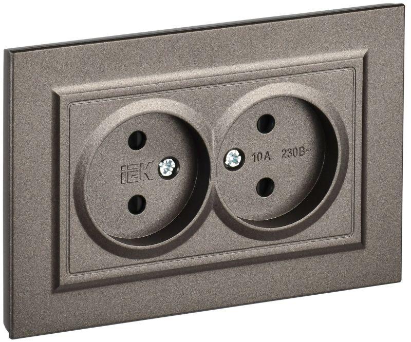 Описание: Розетка 2-м СП BRITE РСш12-2-БрТБ 10А в сборе без заземл. защ. шторки бр. IEK BR-R23-10-K45-F