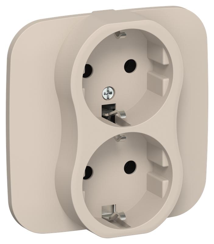 Описание: Розетка 2-м СП FLITE РС12-1-А-ФлЛ 16А с заземл. без защ. шторок безвинтовое крепление в сборе механизм льняной IEK FI-R21A-16-1-K88