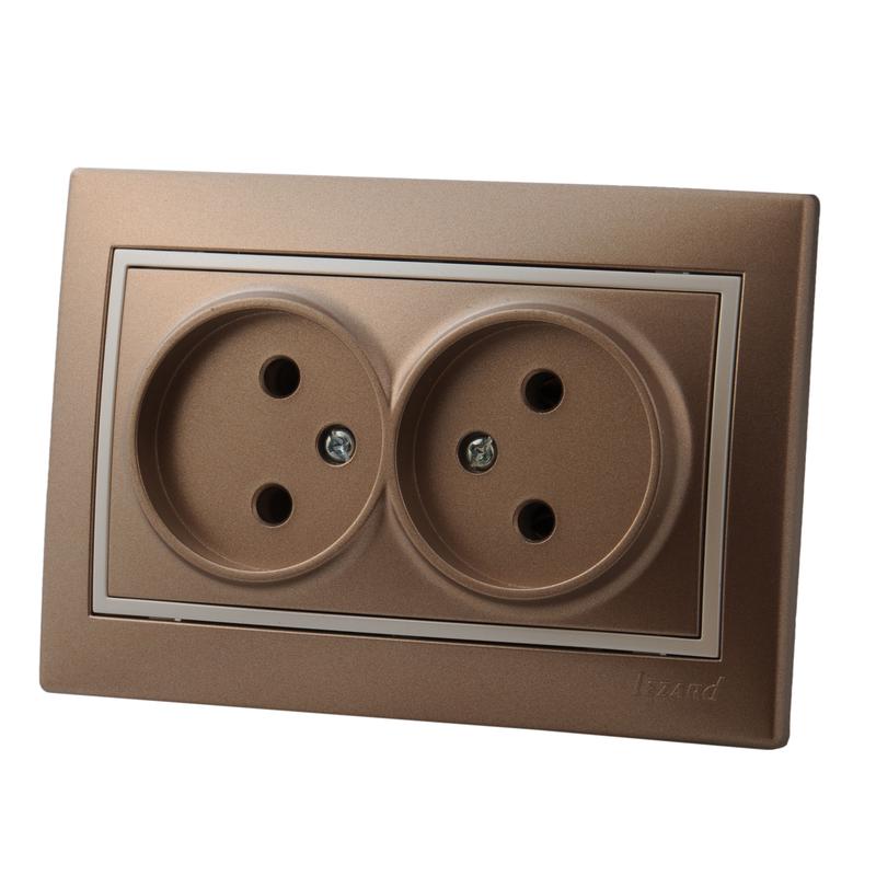 Розетка 2-м СП Mira 16А IP20 без заземл. со вставкой керамика свет. корич./жемчуж./бел. перламутр. LEZARD 701-3130-128 - способы оплаты