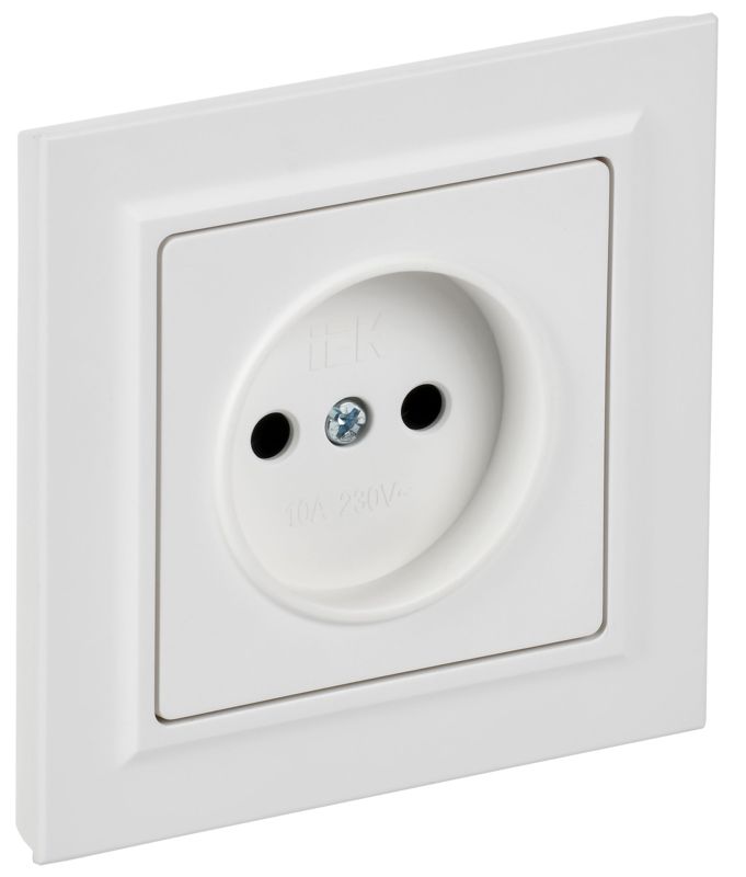 Описание: Розетка BRITE РСР10-1-0-БрАБ 10А в сборе без заземл. без защ. шторок арктич. бел. IEK BR-R10-10-K91-F