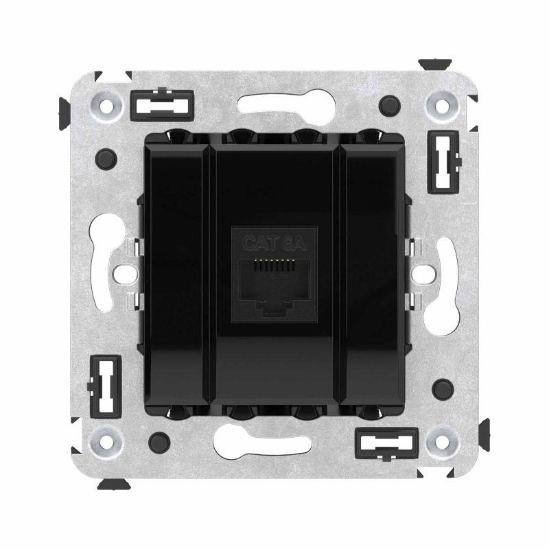 Компьютерная розетка без шторки используется для подключения компьютерной техники и соединения с патч-панелью. Предназначена для скрытого монтажа в стену, поставляется в комплекте с суппортом. Розетка RJ-45 категории 6А может использоваться для организации сетей с частотой до 500 МГц и передавать данные до 10 Гбит/с. Материал розетки – металл, термопласт. Пластиковые детали изделия выполнены в цвете "Черный квадрат".