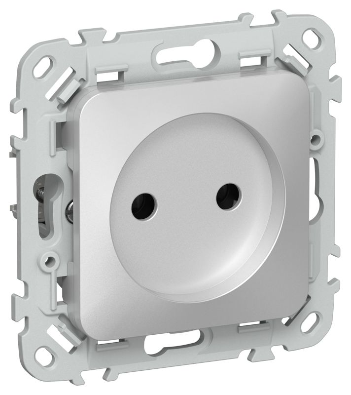 Описание: Розетка СП FLITE РС01-1-ФлА 10А без заземл. без защ. шторок безвинтовое крепление механизм алюм. IEK FI-R10-10-1-K47