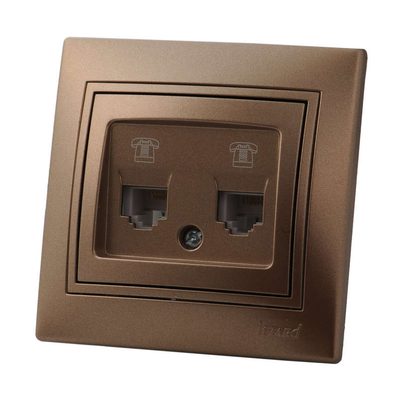 Розетка телефонная 2-м СП Mira RJ11 16А IP20 евро стандарт со вставкой свет. корич. перламутр. LEZARD 701-3131-138 - способы оплаты