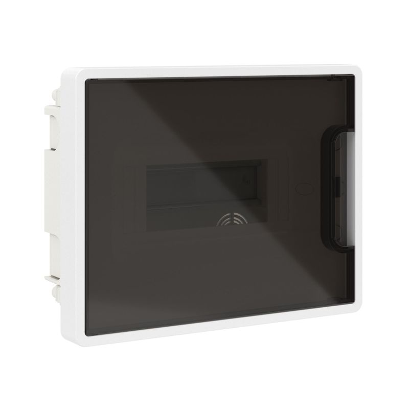 Описание: Щиток встраиваемый 8мод. IP41 с тонированной дверцей с 2 шинами PEN на 6 и 8 отверст. бел. DKC F08B1WD