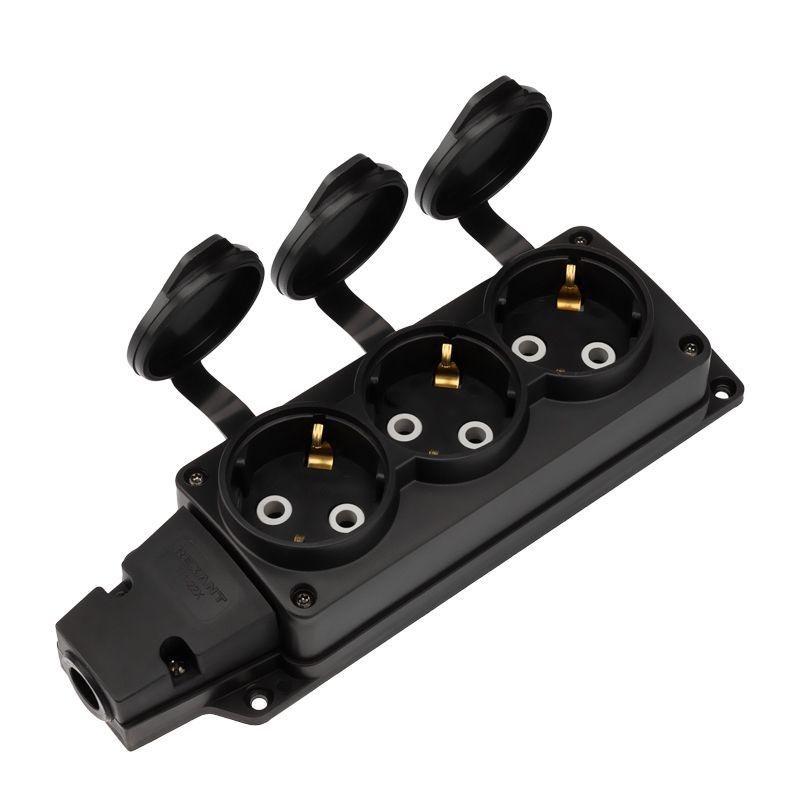 Описание: Колодка удлинителя 3-м с заземл. 16А IP54 влагозащ. с защ. крышкой COMPACT каучук черн. Rexant 111-223