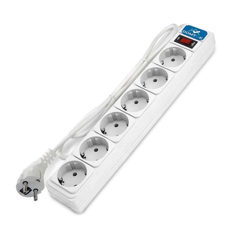 Удлинитель с сетевым фильтром 6х3м с заземл 10А IP20 2.2кВт ПВС 3х1 с выкл. бел. DOMTOK 2516 - условия доставки