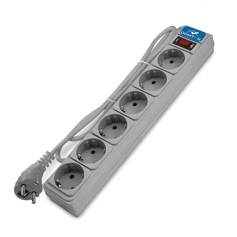 Удлинитель с сетевым фильтром 6х5м с заземл 10А IP20 2.2кВт ПВС 3х1 с выкл. сер. DOMTOK 2520 - условия доставки
