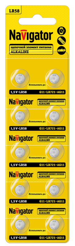 Описание: Элемент питания алкалиновый "таблетка" 95 667 NBT-10 (LR58 AG11 LR721 BP10) (блист.10шт) Navigator 95667