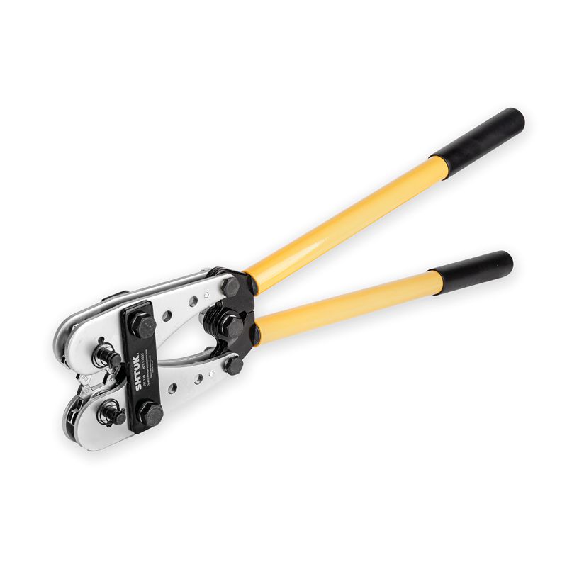 Особая конструкция ручных гидравлических пресс-клещей SHTOK ПК-120 03003 плотно зажимает кабель, не давая ему ""выйти"" из рабочей области. Минимальная площадь опрессовки 16 мм.