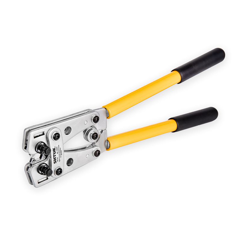 Пресс-клещи с механическим приводом для оконцевания жил с помощью алюминиевых и медных кабельных наконечников. Оконцевание осуществляется переставными матрицами револьверного типа в диапазоне сечений от 6 до 50 мм2.