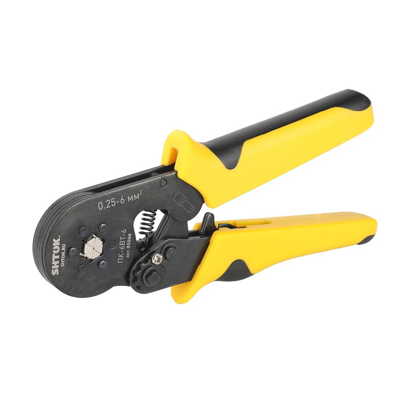 Пресс-клещи для опрессовки втулочных наконечников 0.25-6 мм2 SHTOK ПК-6вт-6 03504 оснащаются храповым механизмом, который гарантирует высокое качество результата. Двухкомпонентные рукоятки имеют эргономичную форму, что способствует удобству эксплуатации. Компактные размеры и небольшой вес обеспечивают легкость хранения и транспортировки.