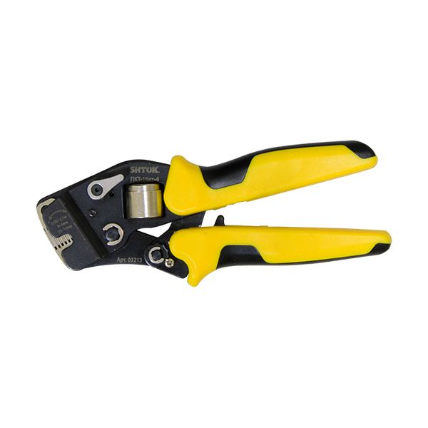 Торцевые пресс-клещи для опрессовки втулочных наконечников 0.08-16 мм2 SHTOK ПКТ-16вт-4 03213 оснащаются храповым механизмом, который автоматически разблокируется по завершении цикла. Модель изготавливается из холоднокатанной стали, что гарантирует высокую прочность и долговечность. Благодаря плотному смыканию матриц соединение отличается превосходным качеством. Конструкция изделия позволяет с комфортом работать даже в местах с ограниченным доступом.