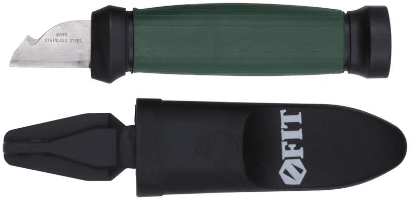 Нож электрика FIT IT предназначен для снятия изоляции с проводов и прочих электромонтажных работ. Лезвие с изогнутой обратной частью с двухсторонней заточкой выполнено из качественной нержавеющей стали. Двухкомпонентная эргономичная рукоятка надежно лежит в руке. Пластиковые ножны обеспечивают безопасную транспортировку инструмента.