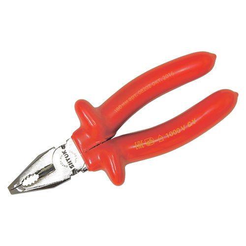 Рабочая часть диэлектрических пассатижей SHTOK 1000В 180 мм 08202, выполненная из хром-ванадиевой стали, увеличивает прочность инструмента.