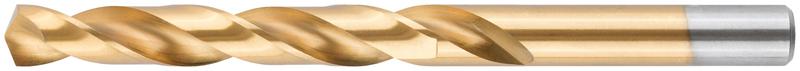 Нанесение нитрид титана(TiN) укрепляет лезвие сверла, делая срок службы сверла значительно больше. Изготовлено методом вышлифовки профиля из высококачественной стали типа HSS с твердостью 64-64 HRC. Это обеспечивает малое значение осевого и радиального биения. Благодаря сплаву с добавлением 6% Вольфрама и 5% Молибдена сверло способно выдержать высокие температуры, а 4% Хрома и 2% Ванадия в составе предотвращают коррозию сверла, продлевая срок службы изделия. Крестообразный угол заточки 135°, класс точности А1. Предназначено для сверлений отверстий в углеродистых и легированных сталях, серых и ковких чугунах, цветных металлах и пластике.