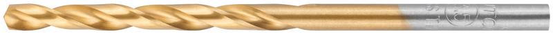 Нанесение нитрид титана(TiN) укрепляет лезвие сверла, делая срок службы сверла значительно больше. Изготовлено методом вышлифовки профиля из высококачественной стали типа HSS с твердостью 64-64 HRC. Это обеспечивает малое значение осевого и радиального биения. Благодаря сплаву с добавлением 6% Вольфрама и 5% Молибдена сверло способно выдержать высокие температуры, а 4% Хрома и 2% Ванадия в составе предотвращают коррозию сверла, продлевая срок службы изделия. Крестообразный угол заточки 135°, класс точности А1. Предназначено для сверлений отверстий в углеродистых и легированных сталях, серых и ковких чугунах, цветных металлах и пластике.
