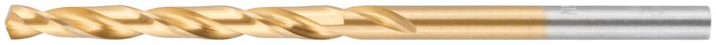 Нанесение нитрид титана(TiN) укрепляет лезвие сверла, делая срок службы сверла значительно больше. Изготовлено методом вышлифовки профиля из высококачественной стали типа HSS с твердостью 64-64 HRC. Это обеспечивает малое значение осевого и радиального биения. Благодаря сплаву с добавлением 6% Вольфрама и 5% Молибдена сверло способно выдержать высокие температуры, а 4% Хрома и 2% Ванадия в составе предотвращают коррозию сверла, продлевая срок службы изделия. Крестообразный угол заточки 135°, класс точности А1. Предназначено для сверлений отверстий в углеродистых и легированных сталях, серых и ковких чугунах, цветных металлах и пластике.