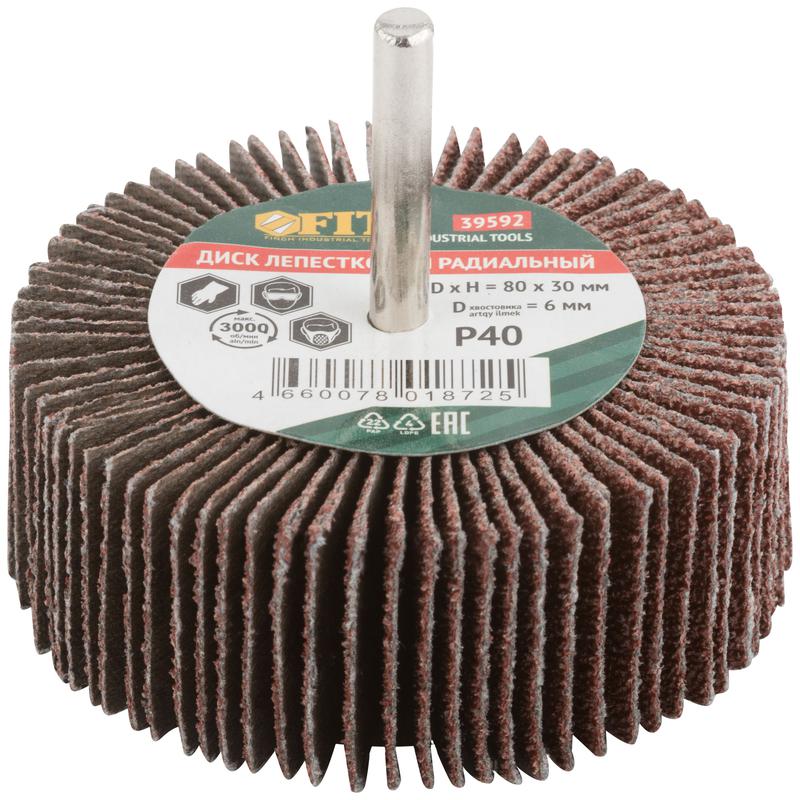Описание: Диск лепестковый для дрели радиальный 80х30х6мм Р 40 FIT 39592