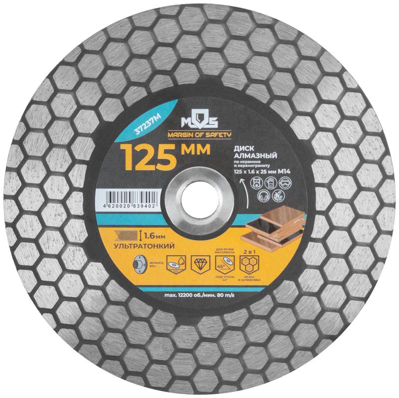 Описание: Диск отрезной алмазный по керамике и керамограниту 125х1.6х25мм фланец М14 MOS 37237М