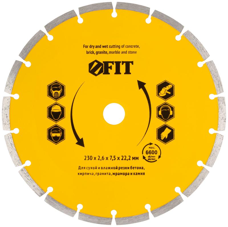 Описание: Диск отрезной алмазный сегментный (сухая и влажная резка) 230х2.4х7.5х22.2мм FIT 37467