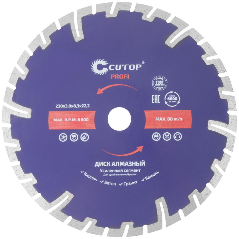 Описание: Диск отрезной алмазный сегментный усиленный турбо 230х3.0х8.3х22.2мм Cutop 66-23030