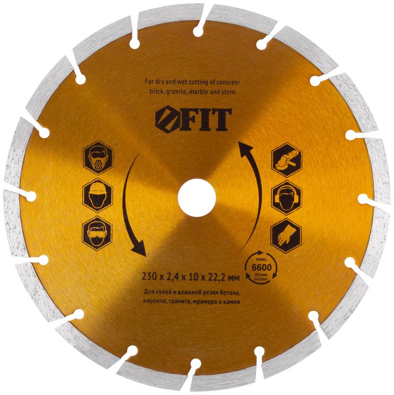 Описание: Диск отрезной алмазный "Турбо-крупный зуб" (сухая и влажная резка) 230х2.4х10х22.2мм FIT 37507
