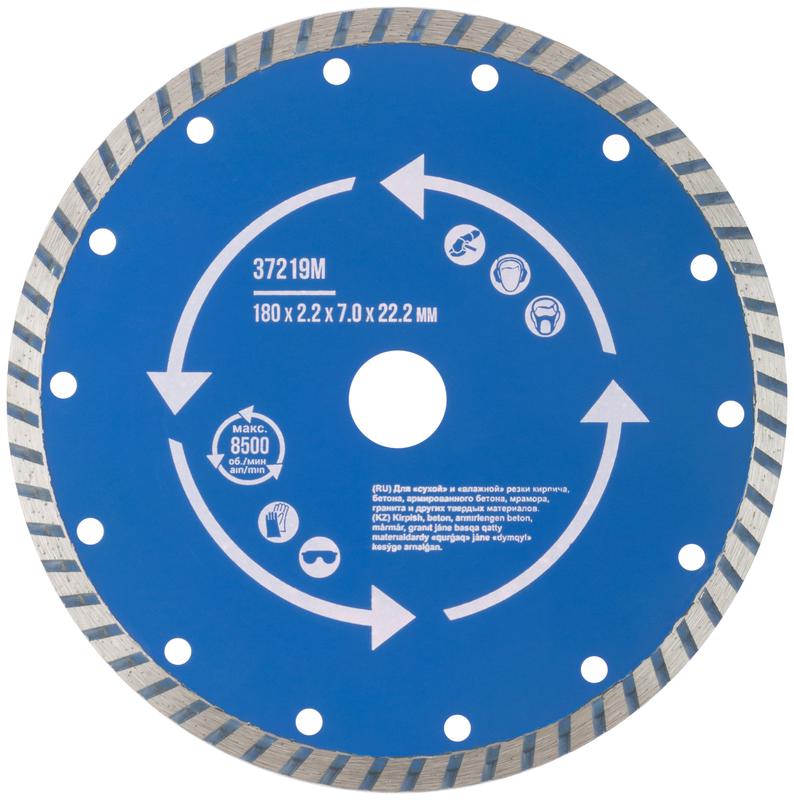 Описание: Диск отрезной алмазный "турбо" (сухая и влажная резка) 180х2.2х7х22.2мм MOS 37219М