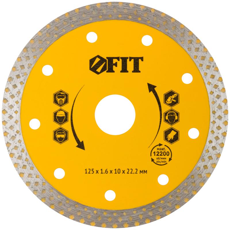 Описание: Диск отрезной алмазный универсальный (сухая и влажная резка) 125х1.6х10х22.2мм FIT 37532