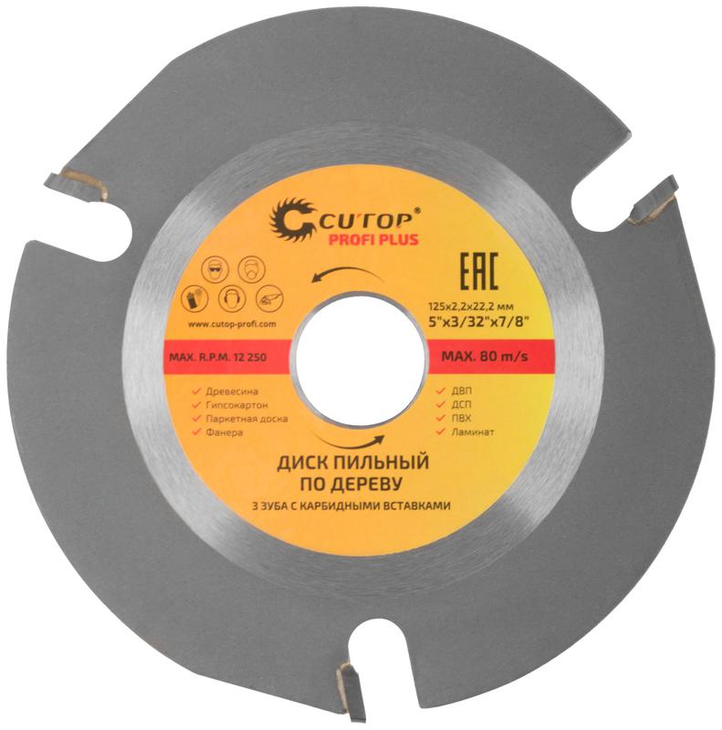 Описание: Диск пильный по дереву для УШМ 3 зуба с карбидными вставками Profi Plus 125х2.2х22.2мм Cutop 75-587