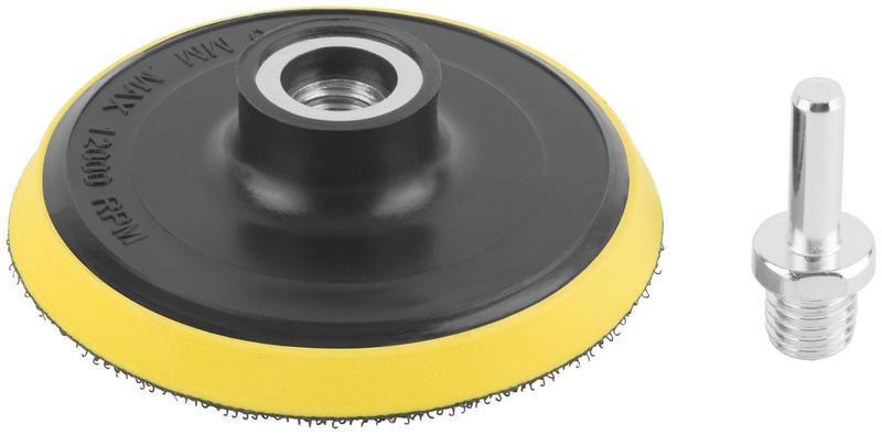 Диск шлифовальный с липучкой FIT IT используется с алмазными гибкими шлифовальными кругами и другими шлифовальными и полировальными кругами.В комплекте переходник со штифтом для установки диска в патрон дрели. Гайка с внутренней резьбой М14 дает возможность использовать диск совместно с УШМ, переходник с цилиндрическим хвостовиком позволяет использовать диск с электрические дрелью. Диск имеет демпфирующие свойства за счет подложки из вспененного этиленвинилацетата (ЭВА) высотой 9 мм. Диск обладает высокой эластичностью и применим при обработке неровных поверхностей. Нейлоновая липучка с крючками способствует быстрой установке или замене шлифовальных или полировальных кругов.