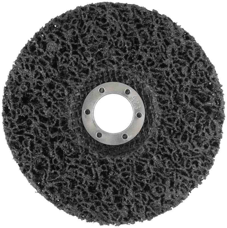 Для обработки поверхностей из стали, нержавеющей стали, цветных металлов, керамической плитки, керамогранита, бетона, кирпича, гранита, мрамора и камня. Для снятия лакокрасочных покрытий, грунтовок и других отделочных материалов. Эффективно удаляет загрязнения с минимальным повреждением поверхности. Посадочный диаметр 22,2 мм. Материал: инструментальная сталь, фиберглас, нейлоновые волокна с абразивным слоем из карбида кремния.»