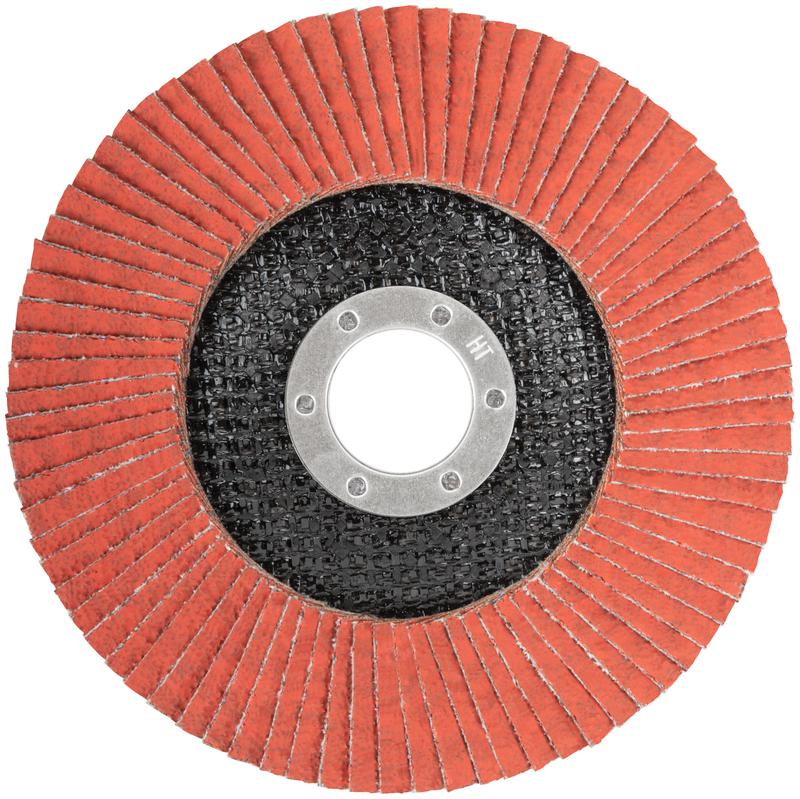 Тип 2 (Конический). 80 лепестков (28 х 16 мм). Для УШМ. Посадочный диаметр 22,2 мм. С керамическим абразивом, который обеспечивает повышенную скорость и эффективность обработки поверхности. Для сухого шлифования. Для шлифования и снятия краски с различных типов стали: инструментальной, легированной, быстрорежущей (HSS), нержавеющей; чугуна; цветных металлов; пластика и дерева. Материал: 100% - керамический
