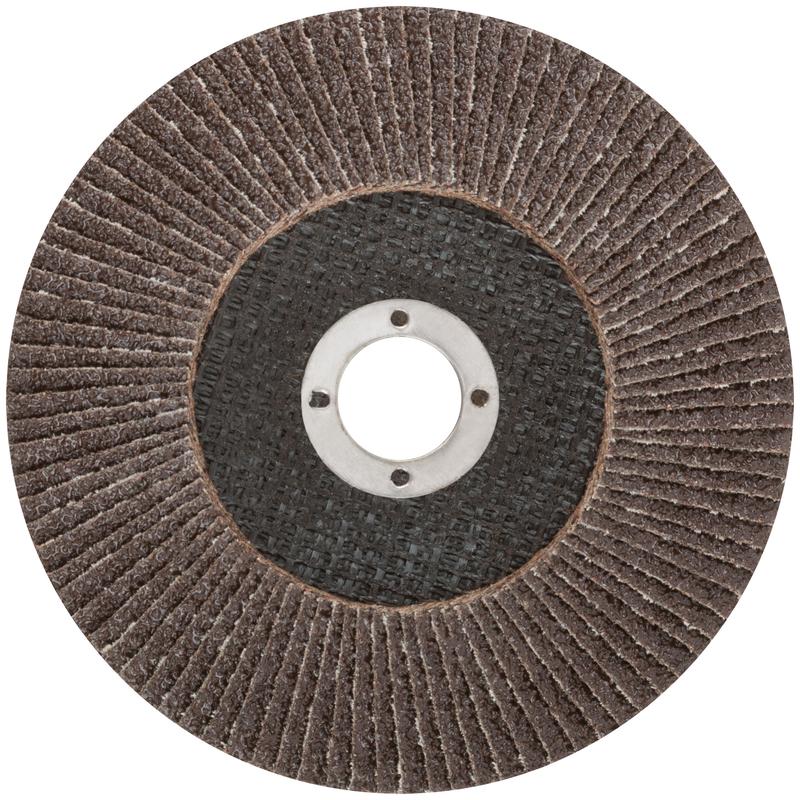 При изготовлении используется высококачественный гибкий абразивный материал состоящий из тканевой основы на которую нанесен слой кальцинированного оксида алюминия. Данный абразив имеет более твердые частицы, чем обычный оксид алюминия - Корунд, что позволяет увеличить скорость обрабатываемой поверхности до пяти раз. Наполняемость диска составляет 80/96 лепестков с углом наклона 10 градусов, что позволяет увеличить КПД круга и его стойкость к износу в несколько раз. Предназначен для обработки металла и нержавеющей стали. Для углошлифовальных машин. Посадочный диаметр 22,2мм.