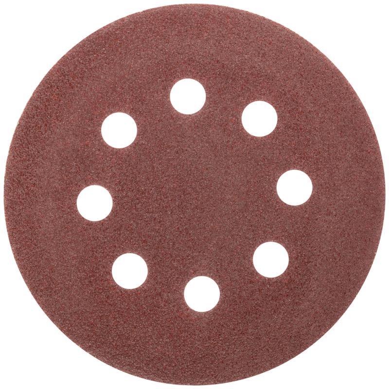 8 отверстий. На тканевой основе с «липучкой». Диаметр 125 мм, набор 5 шт. Для обработки различных материалов. Материал: х/б основа, абразивный слой - оксид алюминия.
