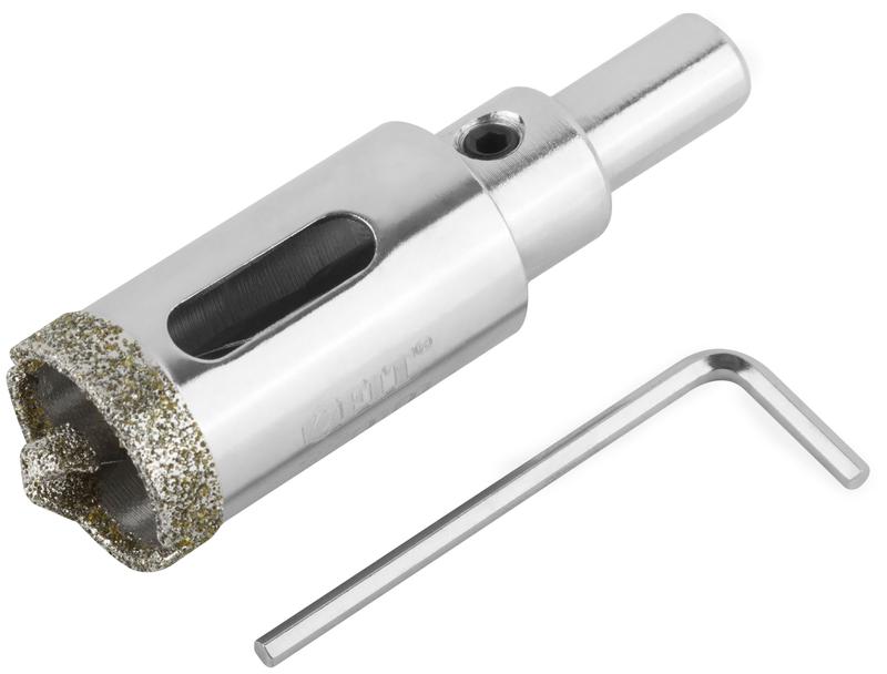Кольцевая алмазная коронка по керамограниту FIT IT предназначена для вырезания круглых отверстий в керамограните, камне, стекле, кафельной плитке. Поставляются в комплекте с центрирующим сверлом и шестигранным ключом. Влажное сверление. Высокая концентрация алмазного зерна обеспечивает износостойкость и длительный ресурс коронок. Чистый рез без сколов достигается за счет мелкого размера алмазных частиц. Центрирующее сверло предотвращает смещение коронки во время работы и способствует точному позиционированию. Трехгранный хвостовик передает больший крутящий момент за счет стойкости к проворачиванию.