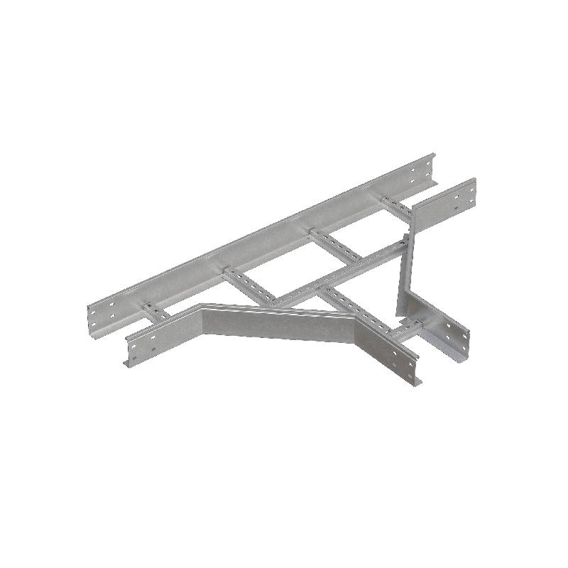 Т-отвод лестничный позволяет придерживаться заданных радиусов изгиба кабельной трассы при монтаже. Модификация изделия используется для отвода от кабельной трассы под углом 90 градусов. Элемент рекомендовано применять c металлическим лестничным лотком шириной 150 мм и высотой борта 100 мм. Элемент выполнен из нержавеющей стали марки AISI304 – материала устойчивого к коррозии, высоким температурам и агрессивным средам. Используется на предприятиях пищевой и медицинской промышленности, химических заводах, в морских и прибрежных зонах, в соответствии с ГОСТ 15150-69. Т-отвод легко монтируется с помощью соединительных пластин и метизов.