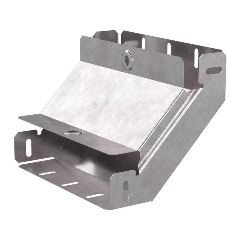 Аксессуары изготовленные из стали с защитным покрытием по методу Сендзимира – это изделия, на которых защитное цинковое покрытие было нанесено на листовую сталь перед изготовлением. Толщина защитного покрытия варьируется от 10 до 22мкм. Климатическое исполнение изделий УХЛ2, что предусматривают эксплуатацию в помещении и под навесом, при температуре эксплуатации от -80 до +150°С. Угол вертикальный внутренний 90 градусов предназначен для подъема кабельных трасс на 90 градусов, для перфорированных и глухих лотков. В комплект входит крышка.