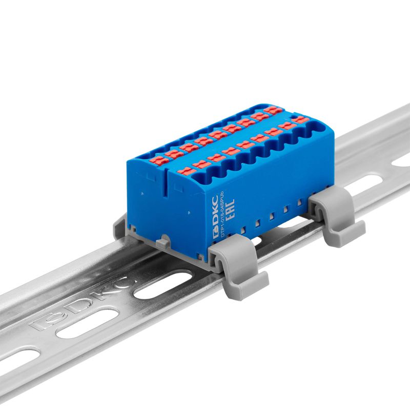 Блок распределительный с горизонт. адаптером на рейку шир. 35мм зажим push-in 18 точек подключения 2.5кв.мм син. DKC DTP1-018-04SPUB-H - способы оплаты