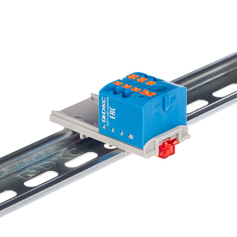 Блок распределительный с вертикал. адаптером на рейки шир. 15/35мм зажим push-in 1 ввод 6кв.мм 6 точек подключения 2.5кв.мм син. DKC DTP1-106-104SPUB-V - способы оплаты