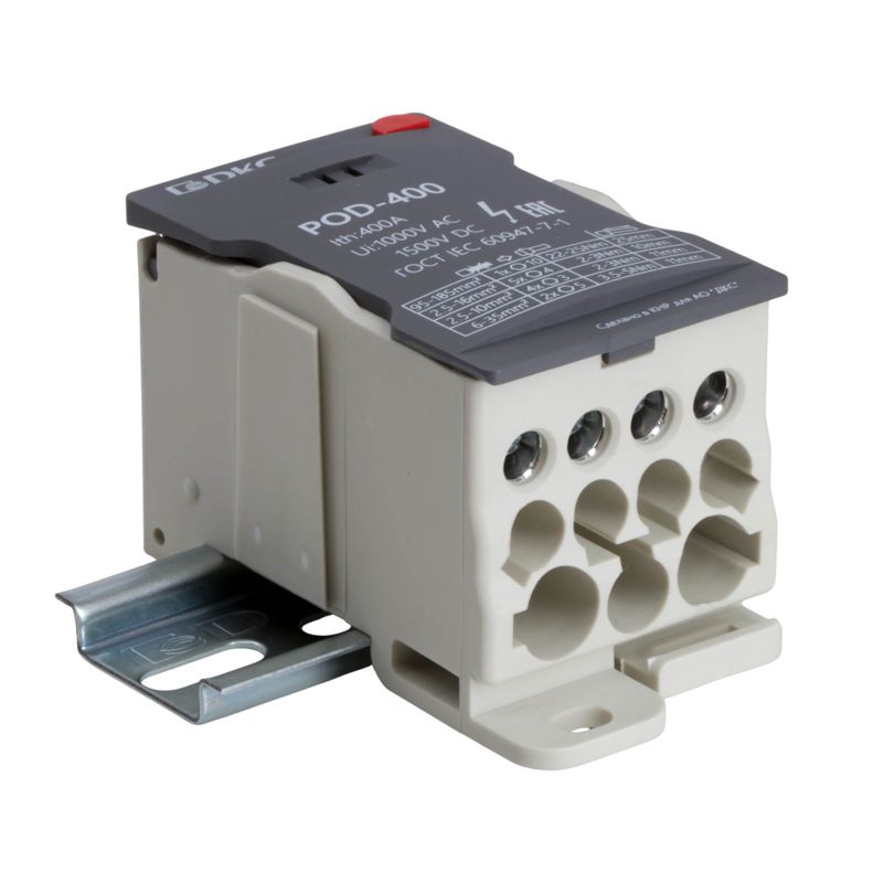 Описание: Блок распределительный винтовой зажим 1х185кв.мм 2х35кв.мм 5х16кв.мм 4х10кв.мм DKC POD-400