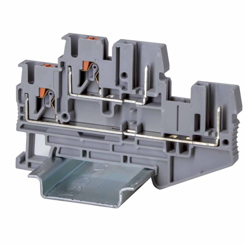 Описание: Клемма двухуровневая проходная под вставной штекер зажим push-in; 4 точки подключения; 2.5кв.мм сер. DKC VPRTT-2.5-2P