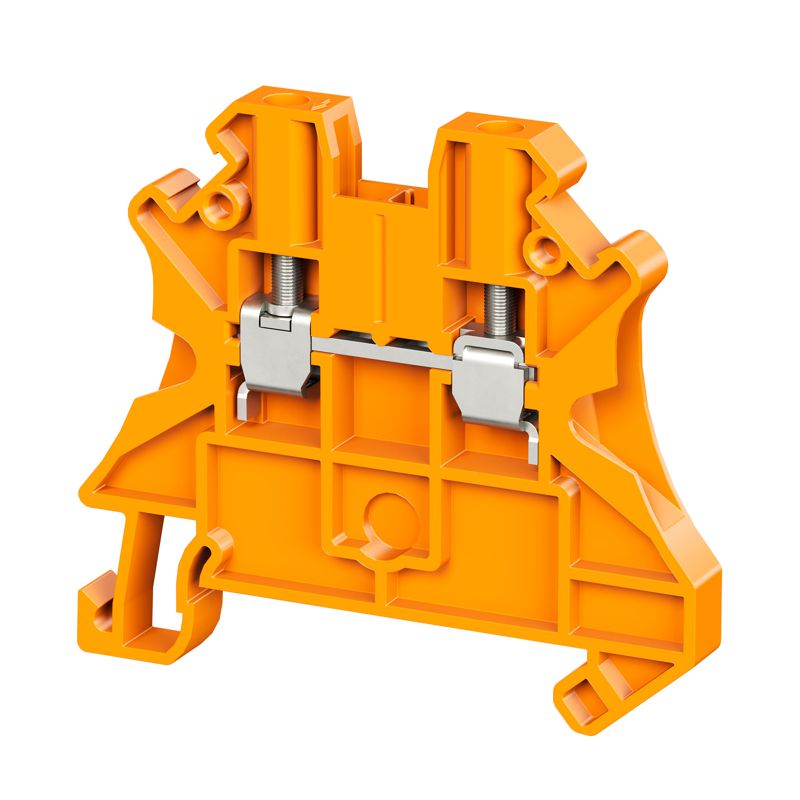 Описание: Клемма проходная винтовой зажим 2 точки подключения 4кв.мм оранж. DKC TUR-4R-OR