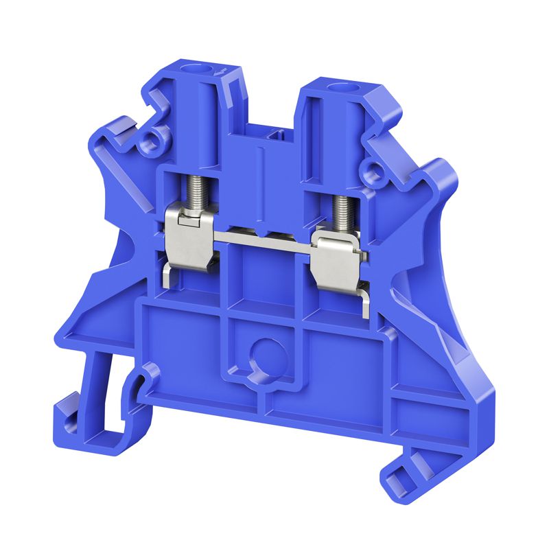 Проходная клемма с винтовым зажимом предназначена для соединения двух проводников. Монтаж на DIN-рейку OMEGA. Температура эксплуатации от -60 до +105°C. Корпус выполнен из ПА 6.6 с классом горючести V0 UL-94.