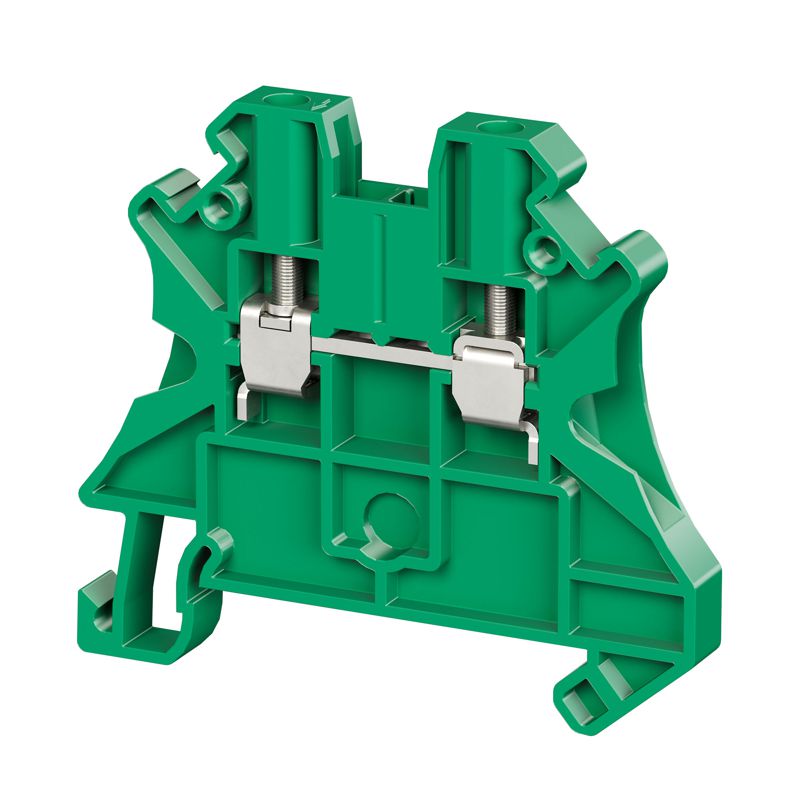 Описание: Клемма проходная винтовой зажим 2 точки подключения 4кв.мм зел. DKC TUR-4R-GN